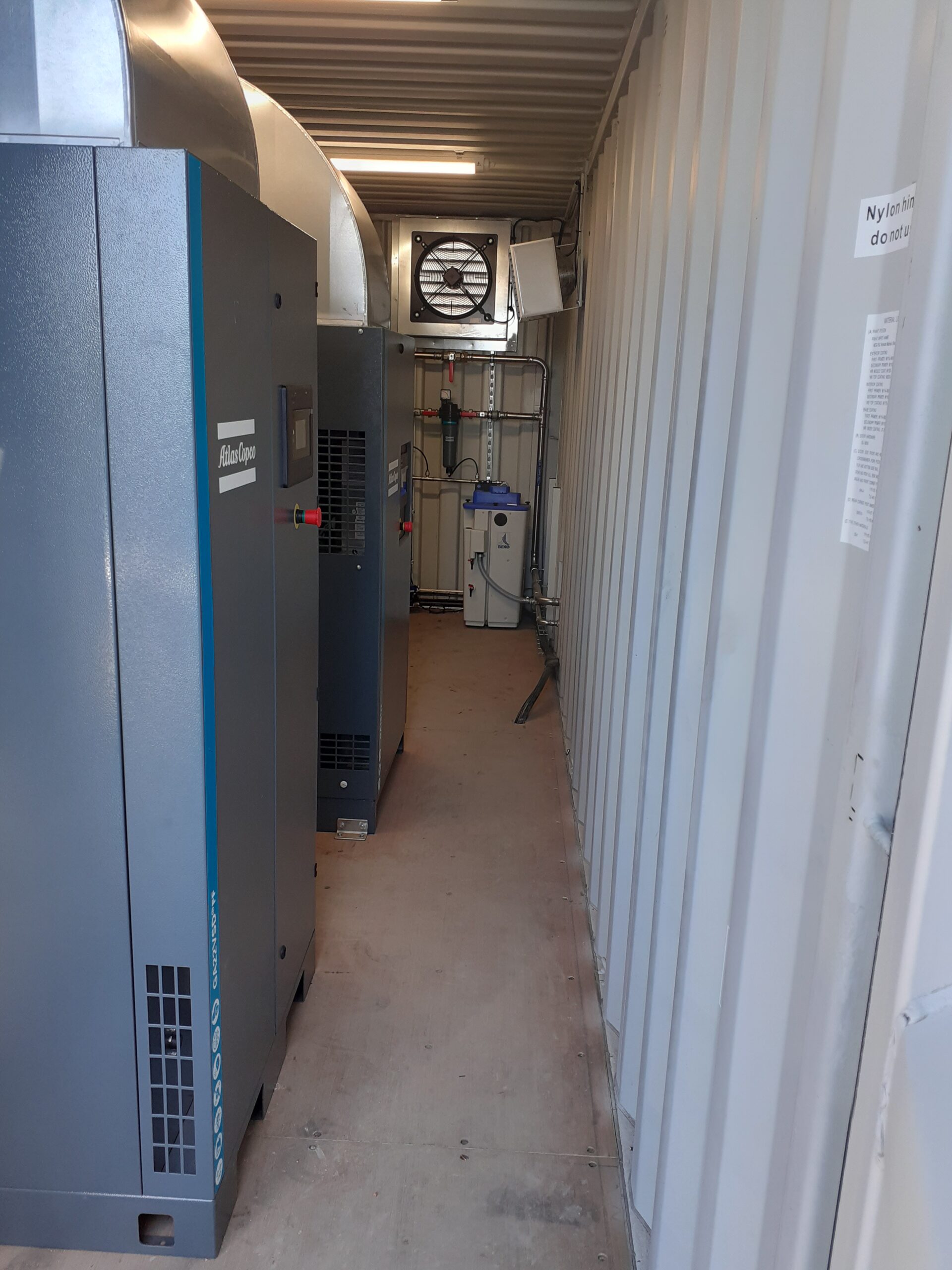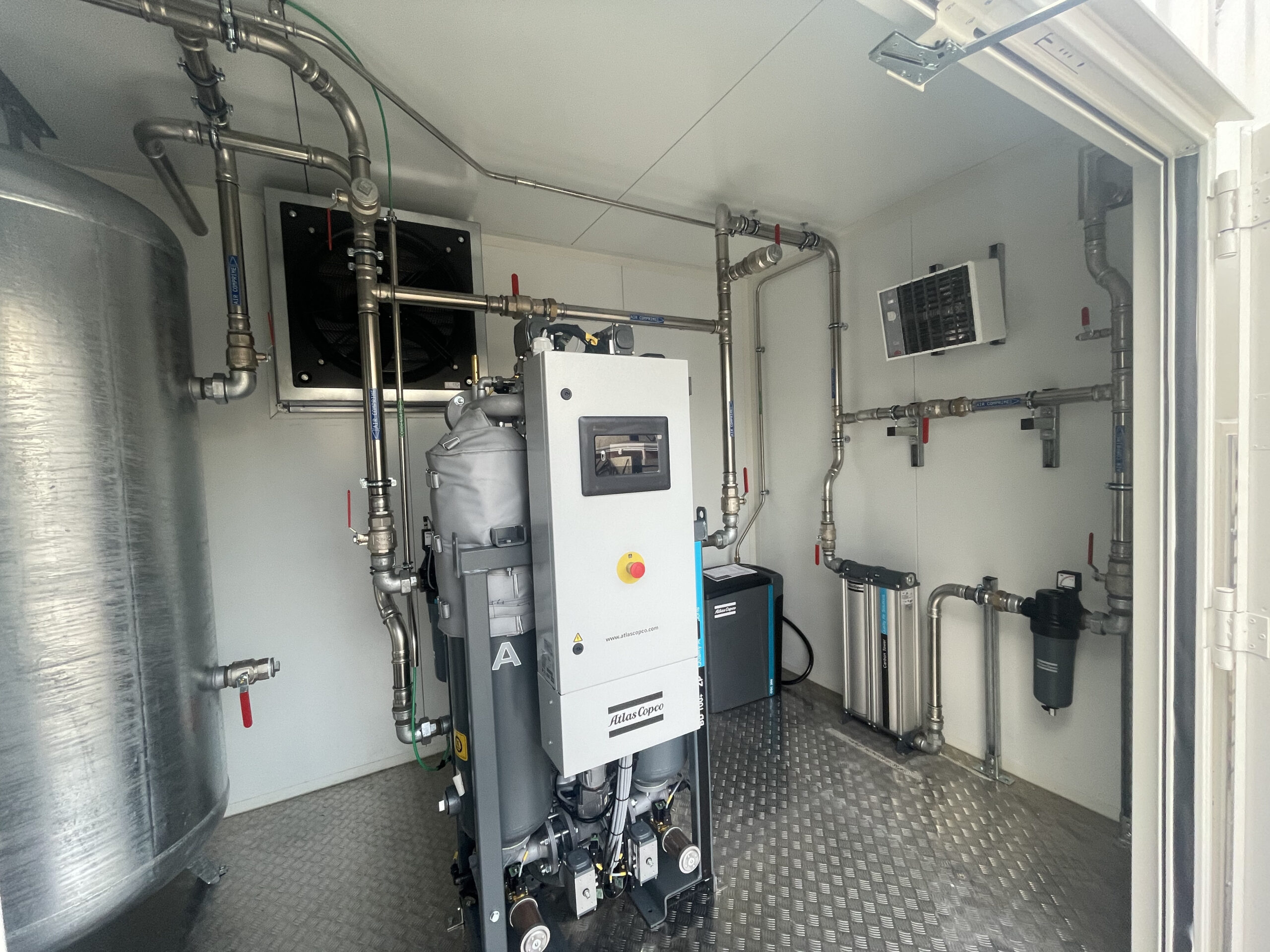 Chaque container est entièrement conçu pour accueillir différents types de systèmes de production d’air, selon les besoins : compresseurs à vitesse fixe ou variable, sécheurs frigorifiques ou à adsorption – garantissant un air comprimé sec avec des points de rosée jusqu’à -40 °C, selon les spécifications.